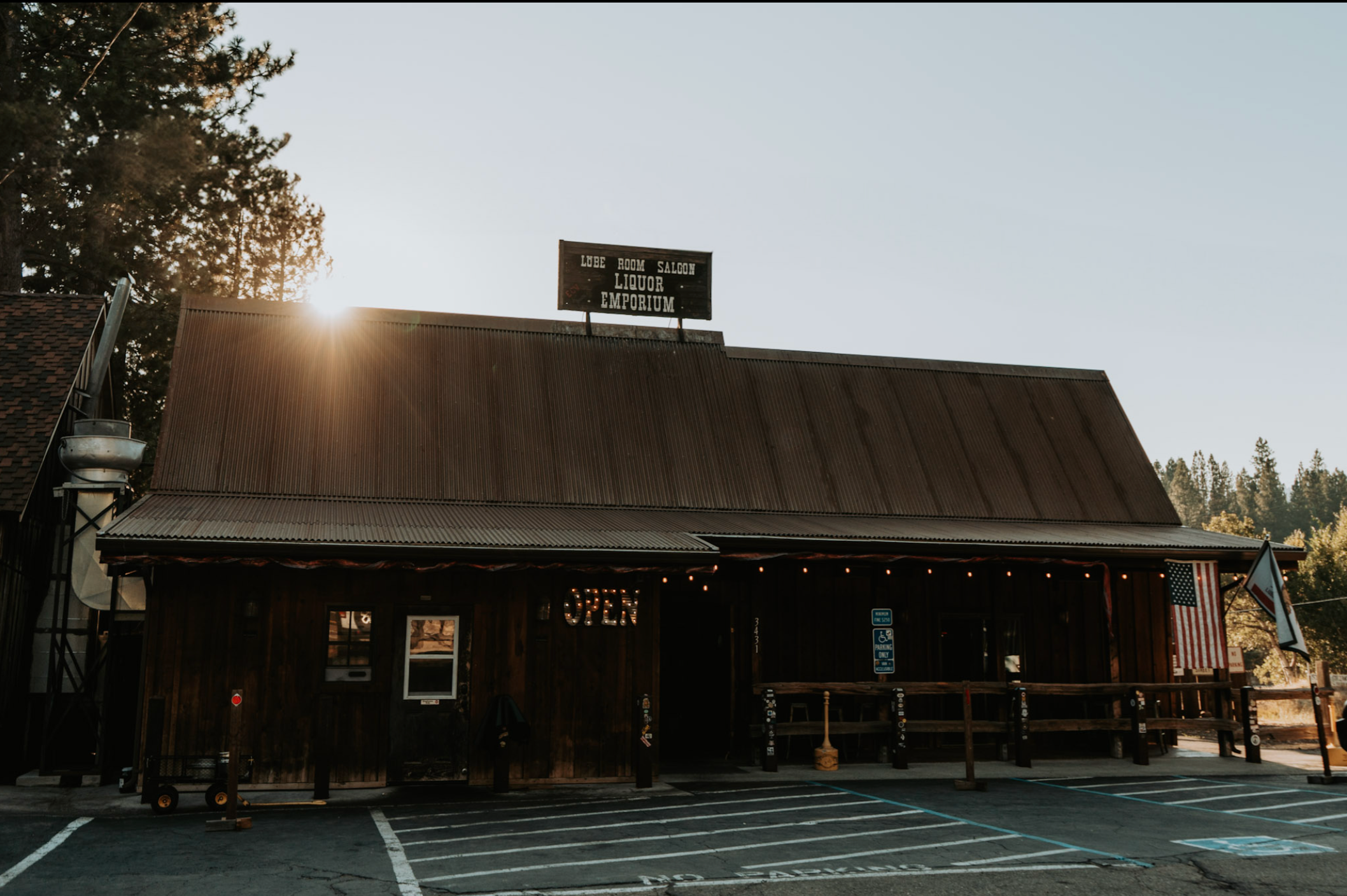 Beyond, a sun-drenched meadow framed by towering redwoods stretches toward the mountains, offering breathtaking views and quiet moments of wonder. Wander, explore, or simply pause to breathe in the serene beauty. Just steps away, the celebrated Lube Room Saloon hums with life, offering live music, delicious fare, games, and the unmistakable charm of this magical corner of the world.